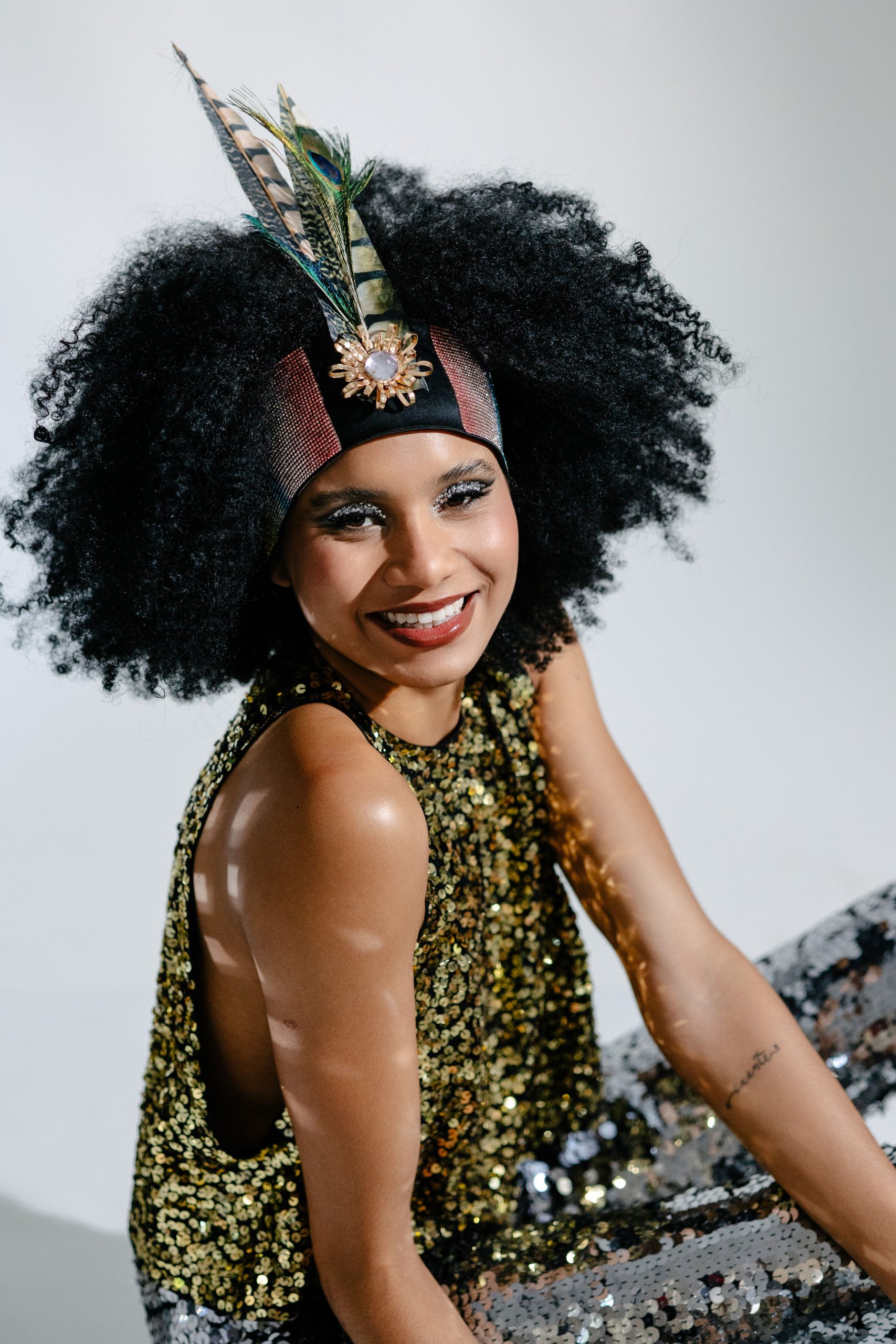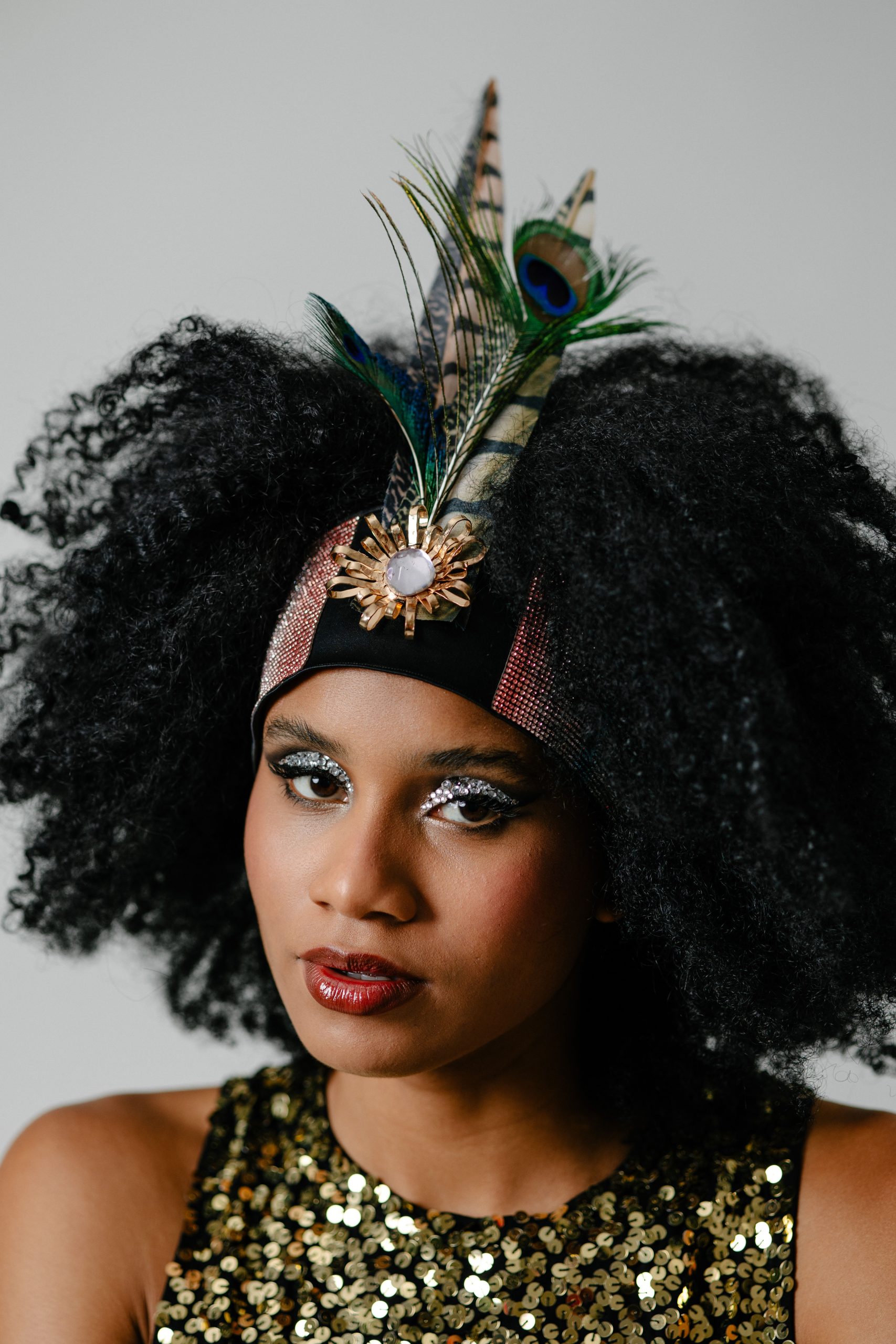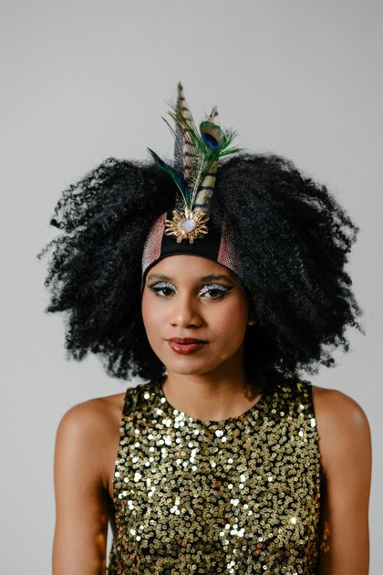 Faixa de cabelo com cetim bucol com penas, brilhos marcantes e detalhe dourado que traz sofisticação e força à peça. Inspirada na energia vibrante do Carnaval, Sangue Latino celebra o calor, a ousadia e a paixão de quem nasceu para brilhar.